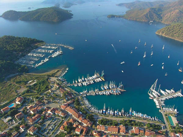 Göcek is a moderate township located on the northern shore of the Gulf of Fethiye, at a distance of 14 miles from Dalaman International Airport, between Dalyan and Fethiye. It is an important center of tourism. The area is filled with quiet, unspoilt coves with lush green pine forests that spill down to the warm turquoise waters. Göcek too bears traces of ancient civilizations. The partly submerged ruin of Batıkhamam, or ‘sunken hamam’ is actually referred to by the locals as Cleopatra’s Bath.Fethiye Fethiye is situated 84 miles southeast of Marmaris, and has an outstanding and busy marina. The city is partially known for its rock tombs carved into the faces of the cliffs by the Lycians. These are similar to those found in Caunos. One of the tombs found here belongs to former Macedonian King Amnytas. Other historical sites to be found in Fethiye include the Fethiye Tower and numerous Sarcophagi, said to date back to 400 BC. Kekova Together with Kalkan, Üçağız and Kaş, this stretch of coast lies in the region roughly between Fethiye and Antalya, and is superfluous in amazing and historic sights. Stops along this route can include the Lycian cities Limyra and Arikanda. Here you can visit the Pericles mausoleum from the 4th century BC. decorated with caryatids (columns or pillars sculpted in the form of female figures, serving as ornamental supports), a magnificent example of ancient art. Arikanda is high up on a mountain a little further inland, allowing you to overlook one of Turkeys most beautiful valleys. Sights here include a gymnasium, numerous baths, the Agora Theatre, water systems, scattered sarcophagi, and the bouleuterion stadium ( or old senate building ).