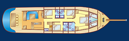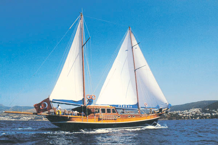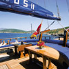 | Xenos II measures 74 feet, making her the third largest in our fleet. Having been fitted with all necessary sailing rigs, and thanks to her hydrodynamic build she is a swift sailer, averaging a speed of 8 knots with ease. Besides her speed and highly experienced and service oriented crew she offers an extensive variety of luxury and water sport facilities to ensure a unique cruise experience to those who sail aboard her, one that is unsurpassed by any other Gulet of her stature. |